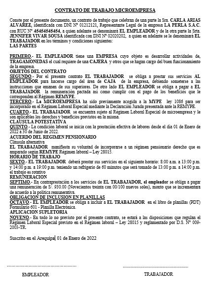 MODELO DE CONTRATO LABORAL MICROEMPRESA